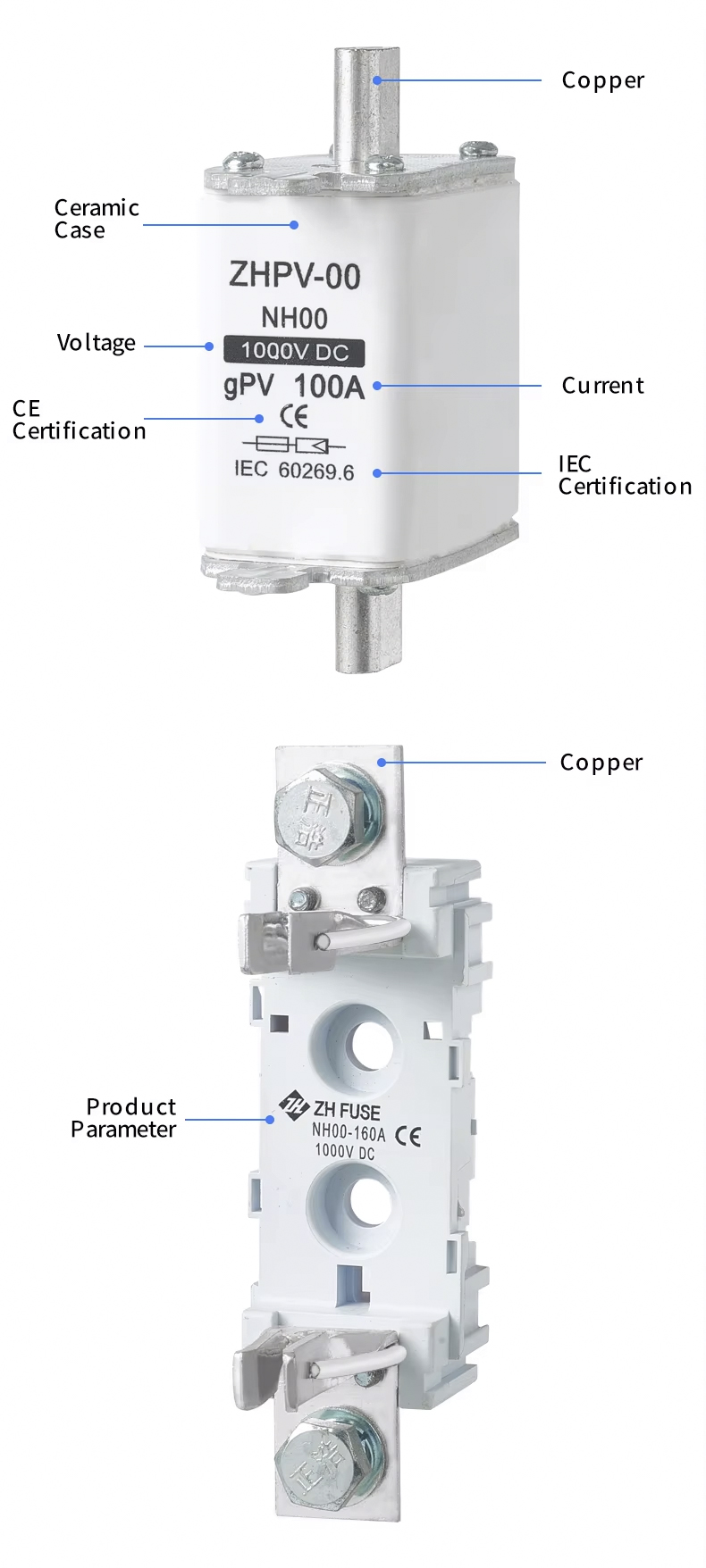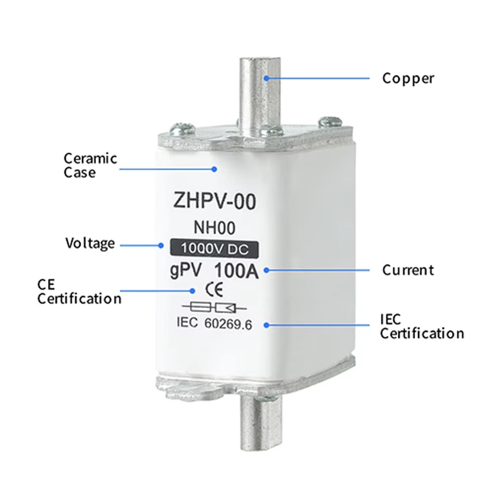 NH00 ఫోటోవోల్టాయిక్ సిస్టమ్ DC 1000V 32~100A ఫ్యూజ్ లింక్