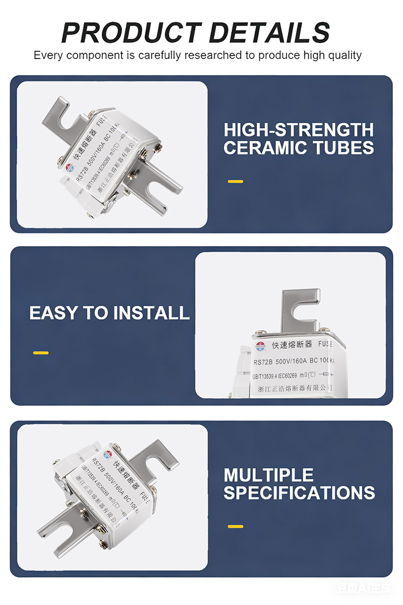 ఈ ఉత్పత్తి పవర్ సిస్టమ్లు, డిస్ట్రిబ్యూషన్ క్యాబినెట్లు, ట్రాన్స్ఫార్మర్లు మొదలైన అప్లికేషన్లకు అనుకూలంగా ఉంటుంది, ఇది సర్క్యూట్ల సురక్షిత ఆపరేషన్ను నిర్ధారిస్తుంది. RS72B 500V 160A BC 100KA ఫ్యూజ్ లింక్లు శీఘ్ర ప్రతిస్పందన లక్షణాలను కలిగి ఉంటాయి మరియు లోపం ఏర్పడినప్పుడు కరెంట్ని త్వరగా కత్తిరించవచ్చు, దిగువ పరికరాలను రక్షిస్తుంది. దీని రేట్ వోల్టేజ్ 500V మరియు రేటింగ్ కరెంట్ 160A, ఇది అంతర్జాతీయ ప్రమాణాలకు అనుగుణంగా ఉంటుంది. ఇన్స్టాల్ చేయడం మరియు నిర్వహించడం సులభం, వివిధ పారిశ్రామిక అనువర్తనాలకు అనుకూలం. RS72B 500V 160A BC 100KA ఫ్యూజ్ లింక్లు దాని స్థిరమైన మరియు నమ్మదగిన పనితీరు కోసం అనేక మంది వినియోగదారుల నుండి గుర్తింపు పొందాయి, ఇది పవర్ సిస్టమ్ల భద్రతను నిర్ధారించడానికి ఆదర్శవంతమైన ఎంపిక.
