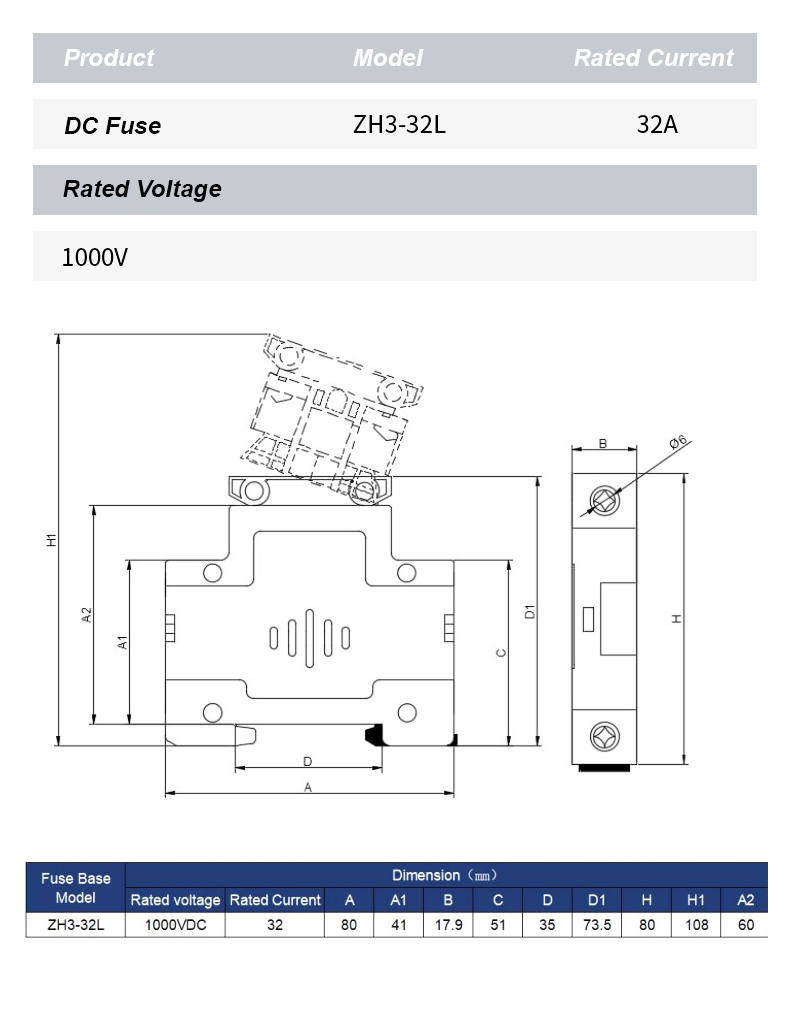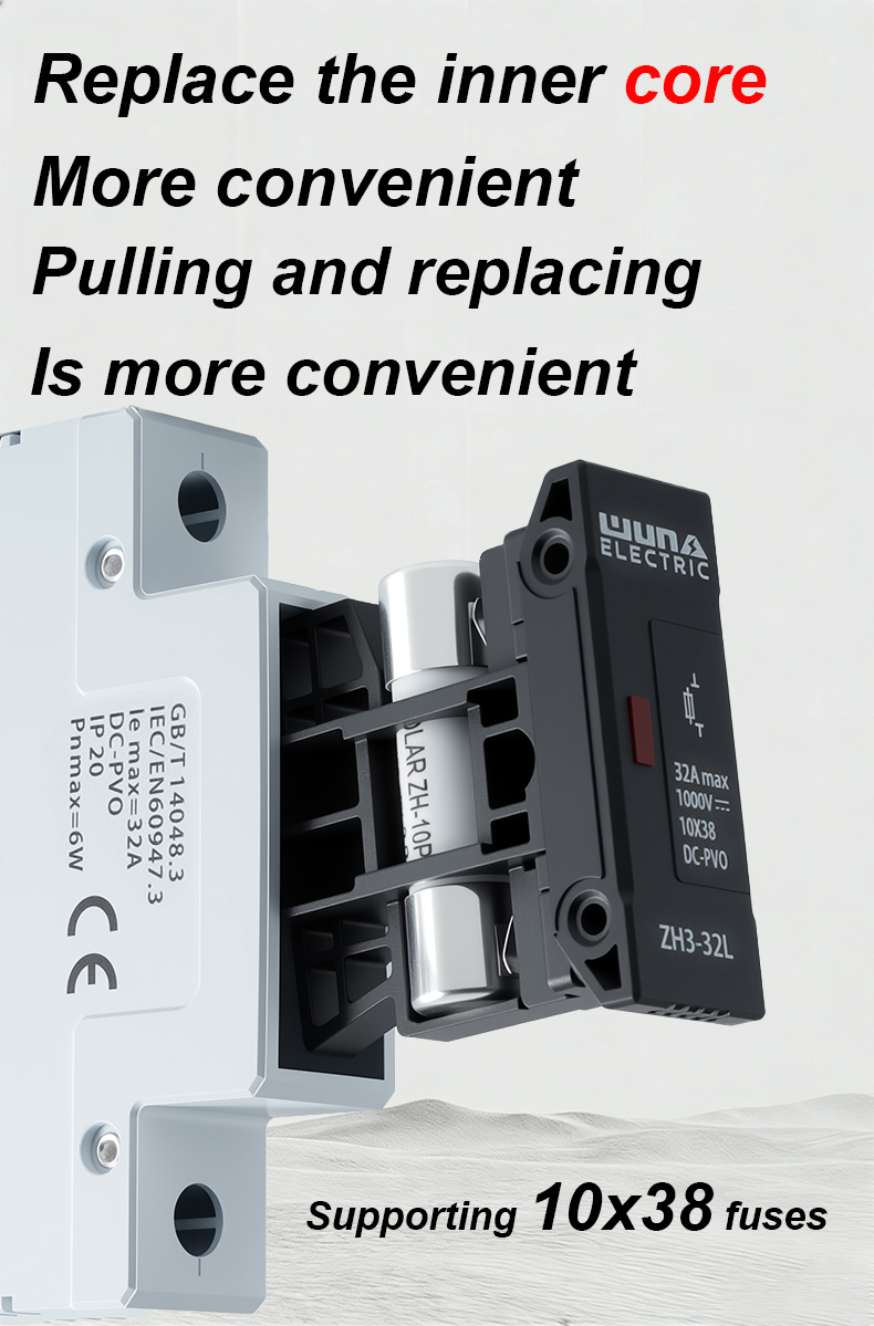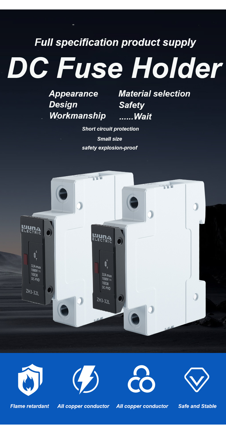 ZH32L DC 1000V ఫ్యూజ్ హోల్డర్ అనేది ఫోటోవోల్టాయిక్ మరియు ఇతర DC అప్లికేషన్లలోని ఎలక్ట్రికల్ సర్క్యూట్లకు నమ్మకమైన రక్షణను అందించడానికి రూపొందించబడిన అధిక-పనితీరు గల భాగం. పటిష్టమైన నిర్మాణం మరియు ఉన్నతమైన ఇన్సులేషన్ను కలిగి ఉంటుంది, ZH32L DC 1000V ఫ్యూజ్ హోల్డర్ 1000V DC వరకు రేట్ చేయబడిన ఫ్యూజ్లను సురక్షితంగా ఉంచడానికి అనుకూలంగా ఉంటుంది, ఇది ఓవర్కరెంట్ మరియు షార్ట్-సర్క్యూట్ నష్టాన్ని సమర్థవంతంగా నివారిస్తుంది.