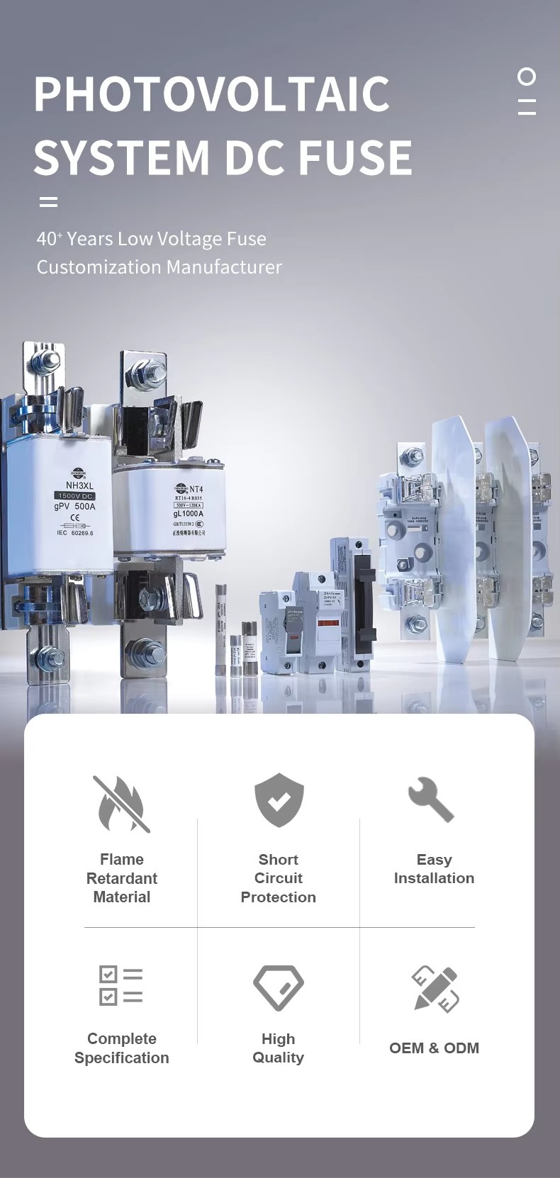 ఫోటోవోల్టాయిక్ డిసి ఫ్యూజ్, స్థూపాకార ఫ్యూజ్, స్క్వేర్ బోల్ట్ బిఎస్ 88 ఫ్యూజ్ లేదా ధర జాబితా గురించి విచారణ కోసం, దయచేసి మీ ఇమెయిల్ను మాకు ఉంచండి మరియు మేము 24 గంటల్లో సన్నిహితంగా ఉంటాము.